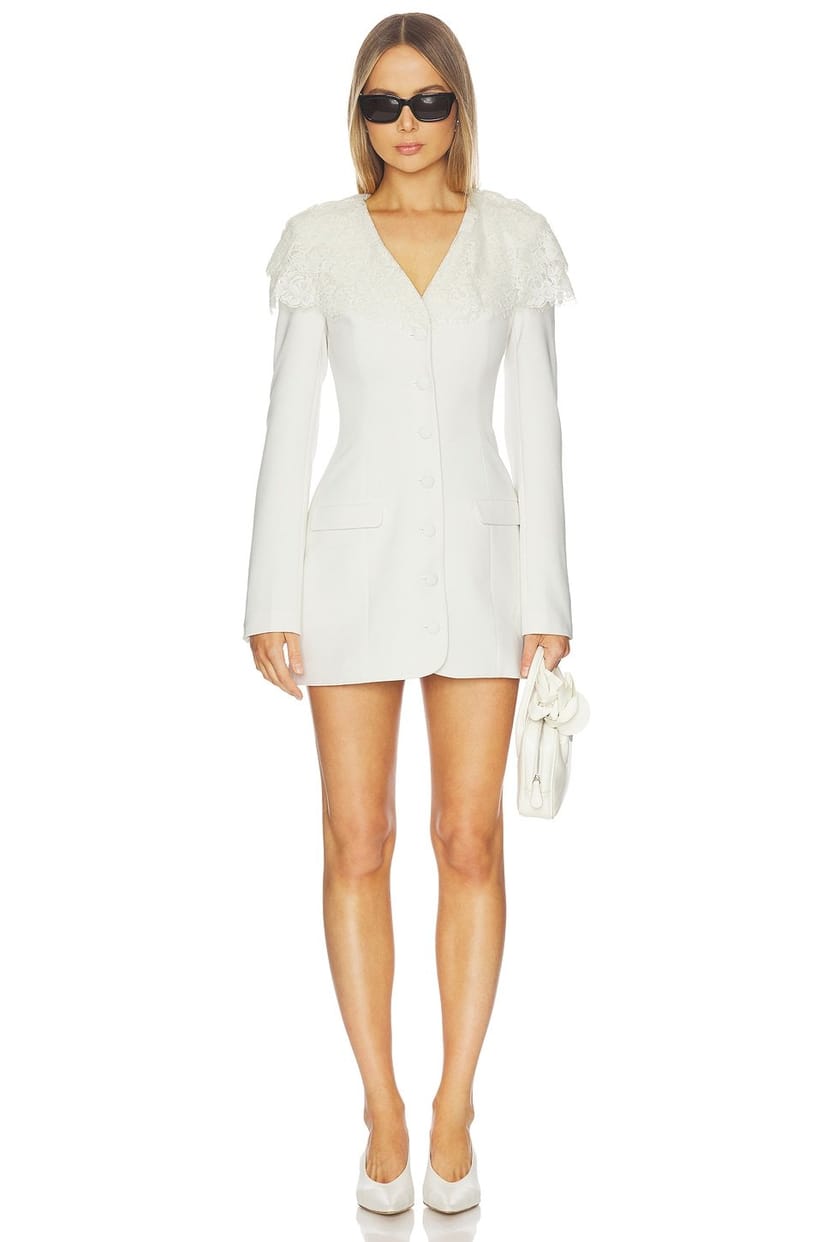 The Revolve Ivory Lace Trim Blazer Dress is ideal for casual, evening, date-night.
