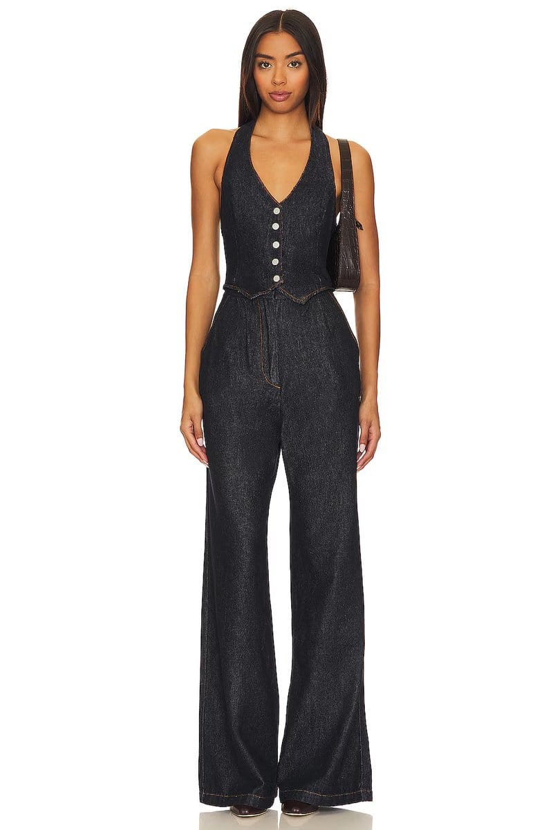The Revolve Isadore Denim Jumpsuit in Indigo is available in sizes XXXL, XXL, XL, XS, L, M, S.