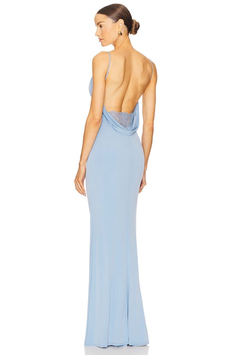 The Revolve Surreal Gown with Lace Neckline in French Blue is ideal for evening, formal.
