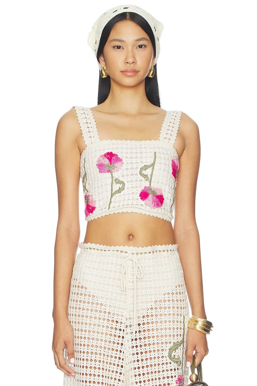 The Revolve Floral Embellished Floral Crop Top in Multicolor is ideal for casual, beach.
