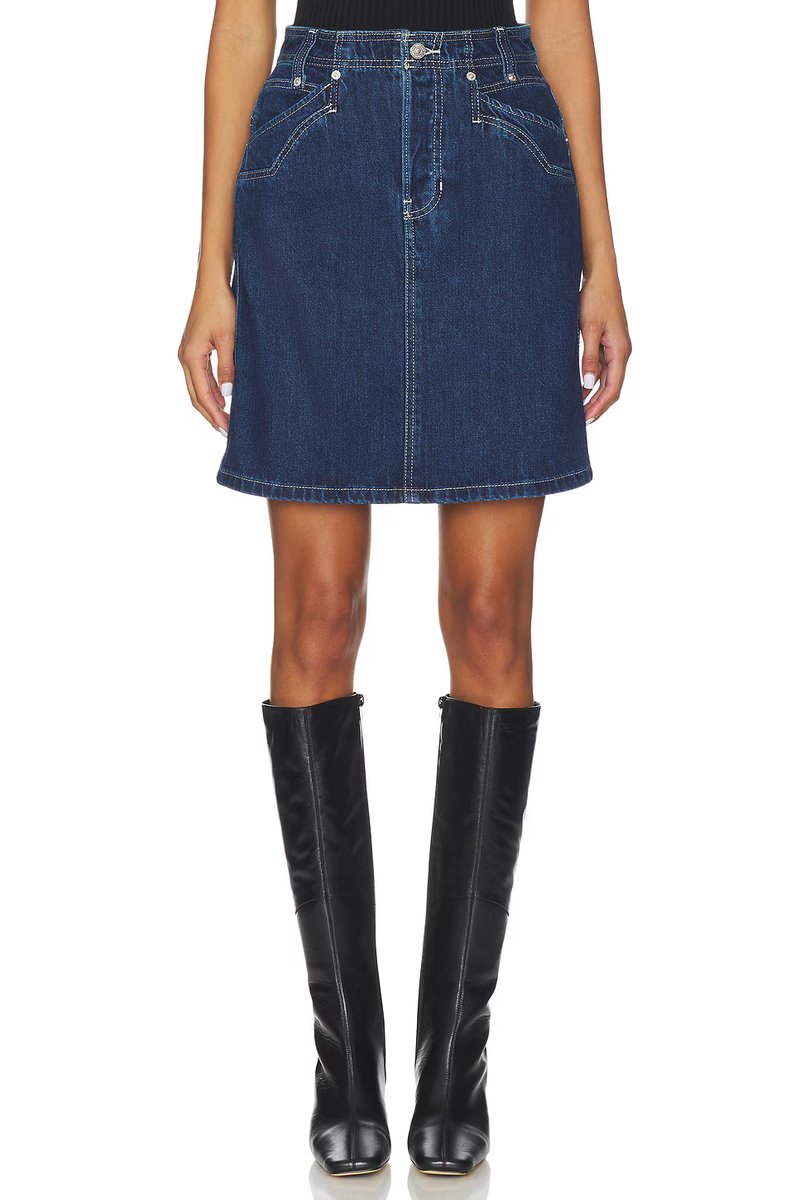 Crafted with a midi length, this denim skirt features a high waistband and stitched details. Ideal for a casual day out or a relaxed evening.