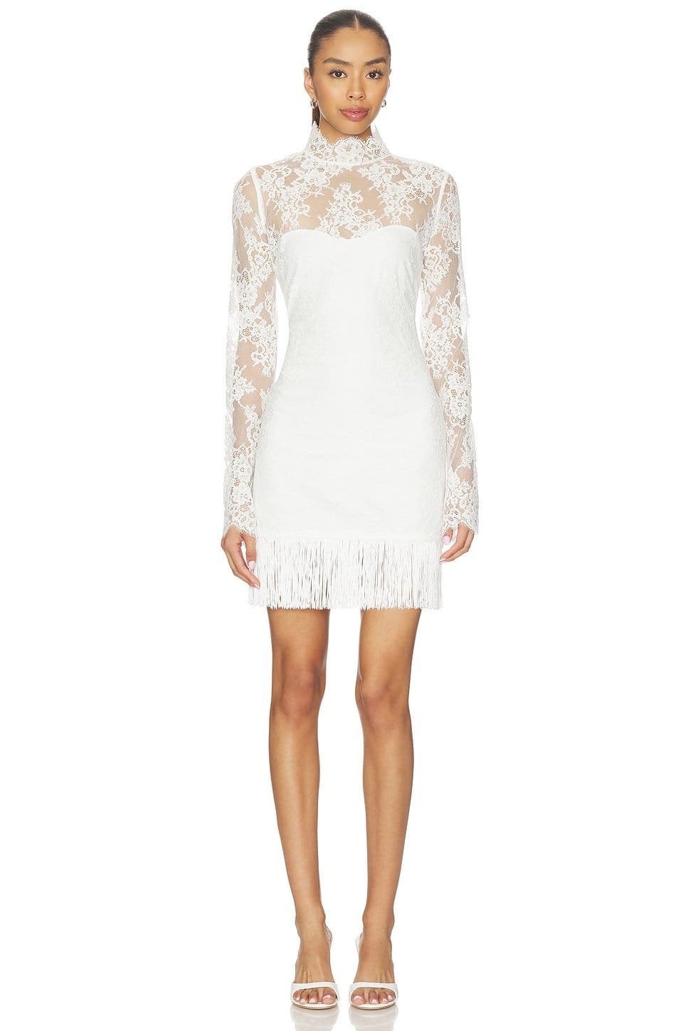 The Revolve Xylina Lace Mini Dress with Long Sleeves in Ivory is ideal for formal, party, date-night.