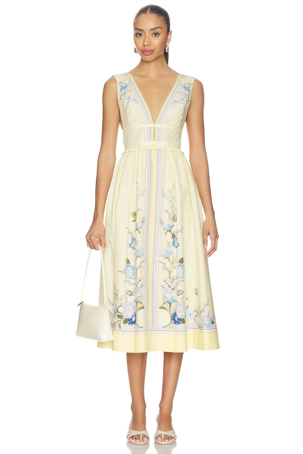 “Pair with white sandals and a cream clutch for a garden party look.”