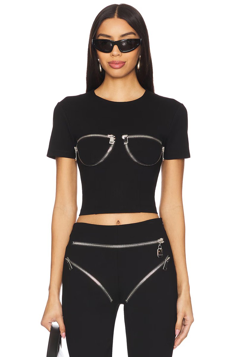 The Revolve Zipper Bustier Cup T-Shirt in Black is ideal for casual, evening.