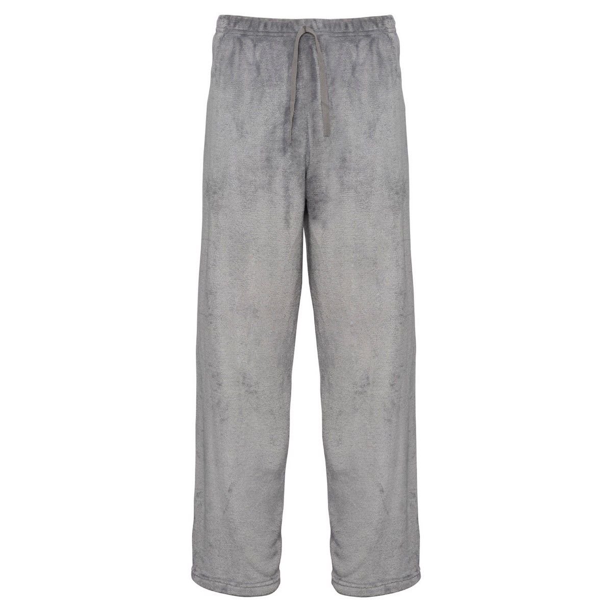 Comfortable grey fleece lounge pants for men. Made from ultra-soft microfleece, these pants feature a drawcord waistband and elasticated cuffs. Ideal for relaxed home wear.