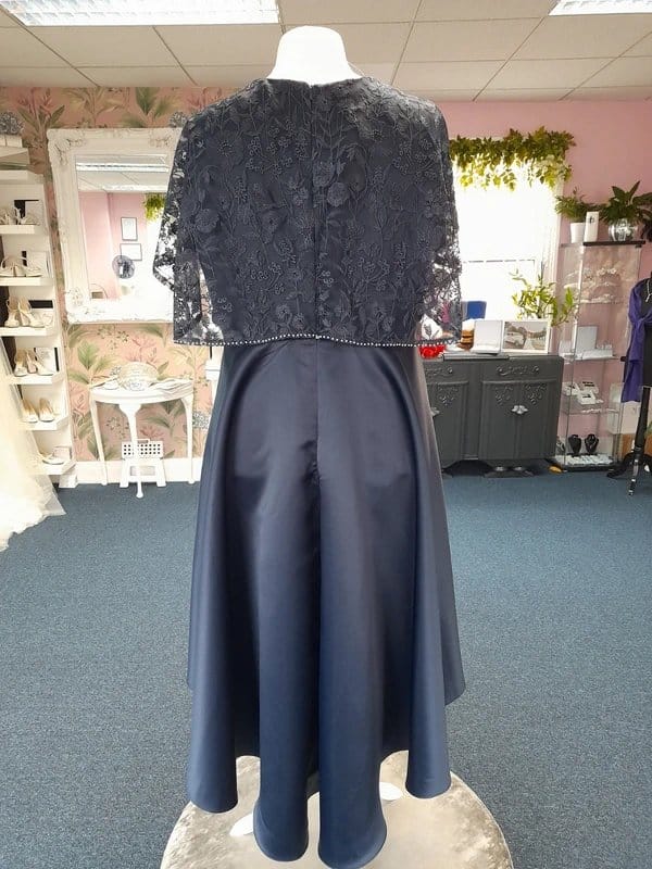 The Richard Design Navy Blue Mother of the Bride Dress is made from satin, lace.