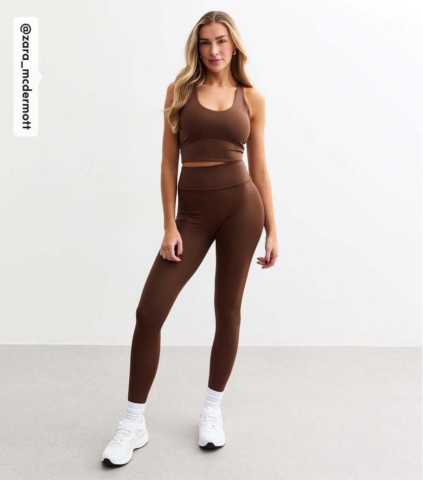 The Rise Brown Active Plain Leggings by Zara McDermott is available in sizes 14.