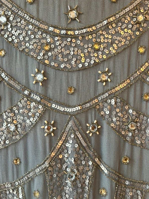 Light Blue Embellished Sequined Knee Length Dress — the must-have occasion dress for evening events, parties, and special occasions. Designed in light blue, this knee-length dress features short sleeves, a cut-out V at the back with zip, and is fully lined for comfort. Crafted from lightweight fabric with lots of sequins and embellishments, it catches the light beautifully. Includes a full-length lining for coverage.