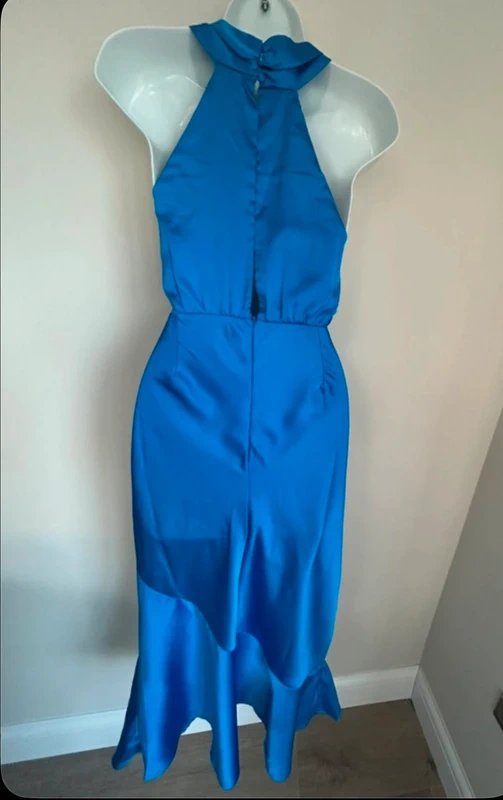 The River Island Satin Midi Dress with Halter Neck in Royal Blue is available in sizes S.