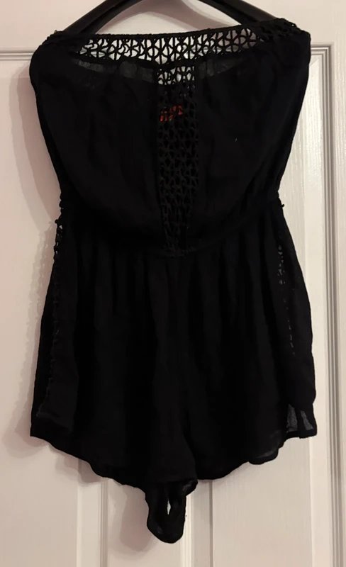 The River Island Black Playsuit Plunge in Holiday Beach Party is available in sizes M.