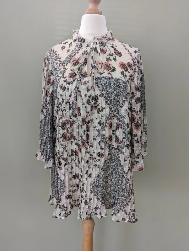 The River Island Floral Pleated High Neck Blouse in Cream is available in sizes S.