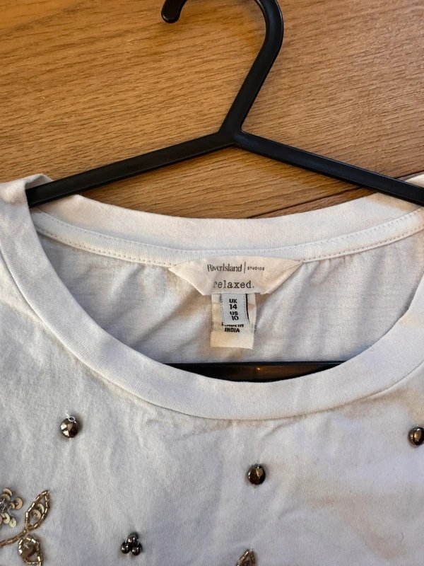 The River Island Beaded Floral Embellished T-Shirt in White is available in sizes M.