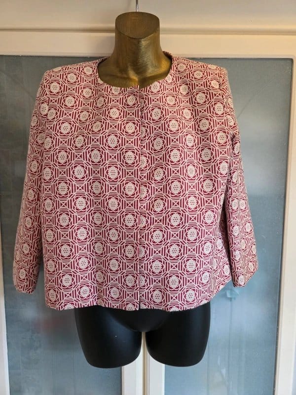 This burgundy patterned print River Island crop jacket is fully lined and sized UK 10. Perfect for adding a stylish touch to any outfit, it features a chic, modern design.