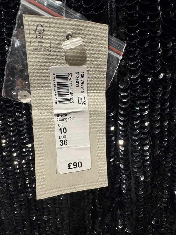 The River Island Sequin Embellished Dress in Black and White is available in sizes S.