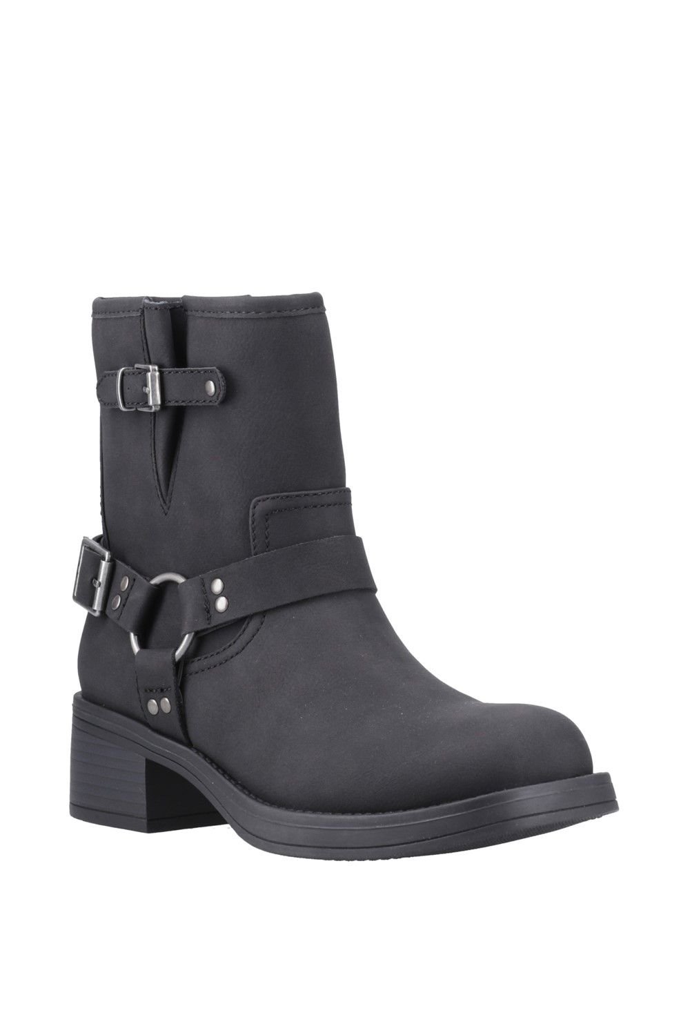 The Rocket Dog Women's Nino Mid Biker Boots in Black is available in sizes 5, 6, 7.