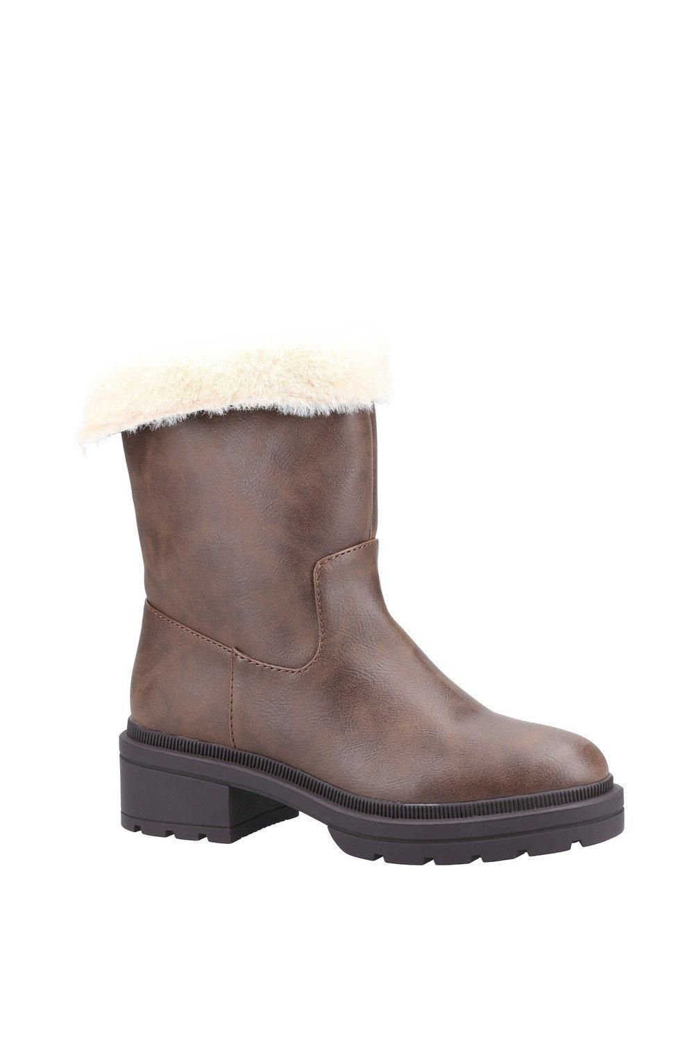 The Rocket Dog Women's Idea Mid Boot in Brown is made from leather, faux fur.