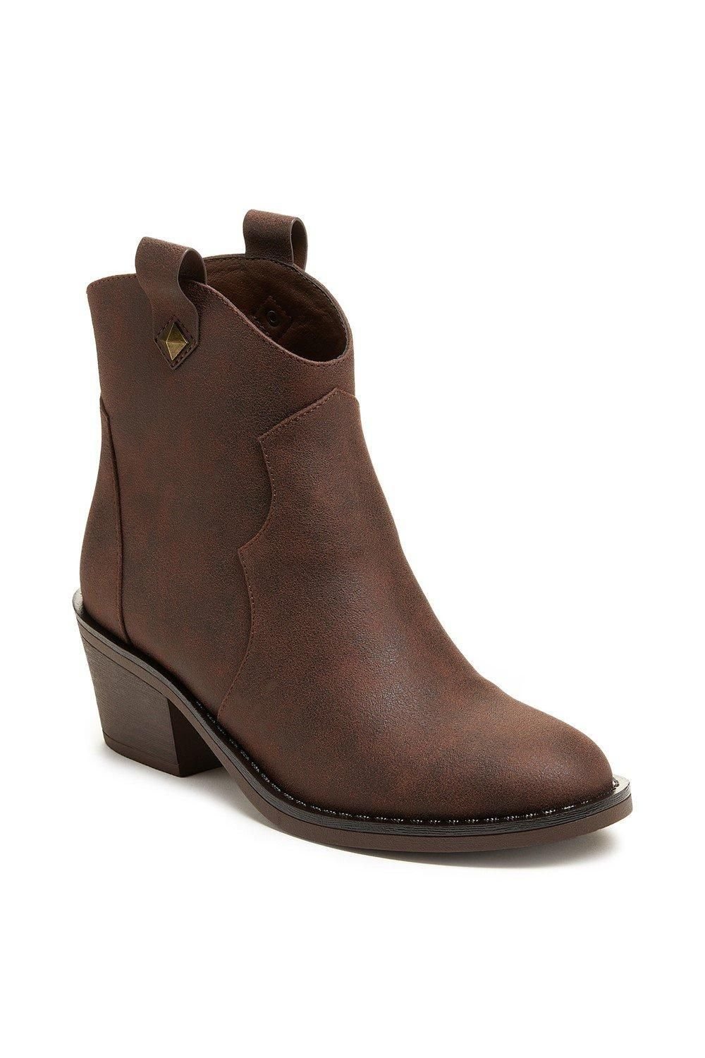 Add a touch of rock 'n' roll to your wardrobe with Rocket Dog's Yolanda Brown Western Boots. These faux leather boots, complete with stud details, are the perfect way to elevate your everyday style.