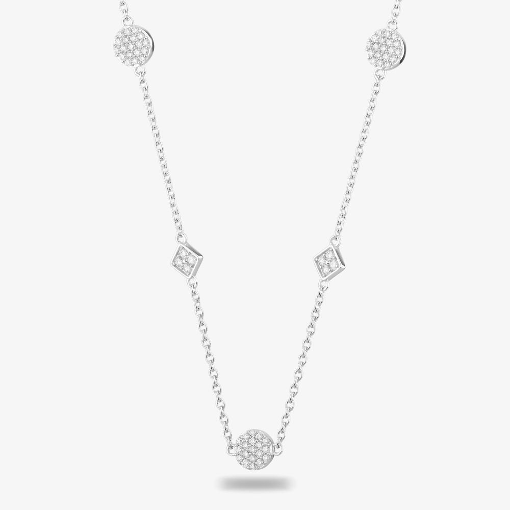 The Rosa Lea Silver Pave Squares & Circles Necklace is available in sizes 50 CM.