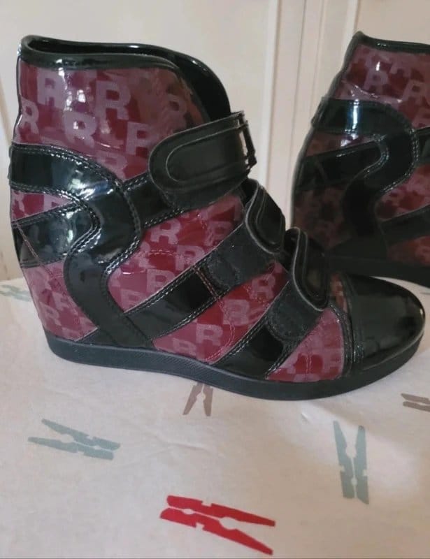 The Rucoline Burgundy Leather Wedge High Top Shoes is available in sizes S.