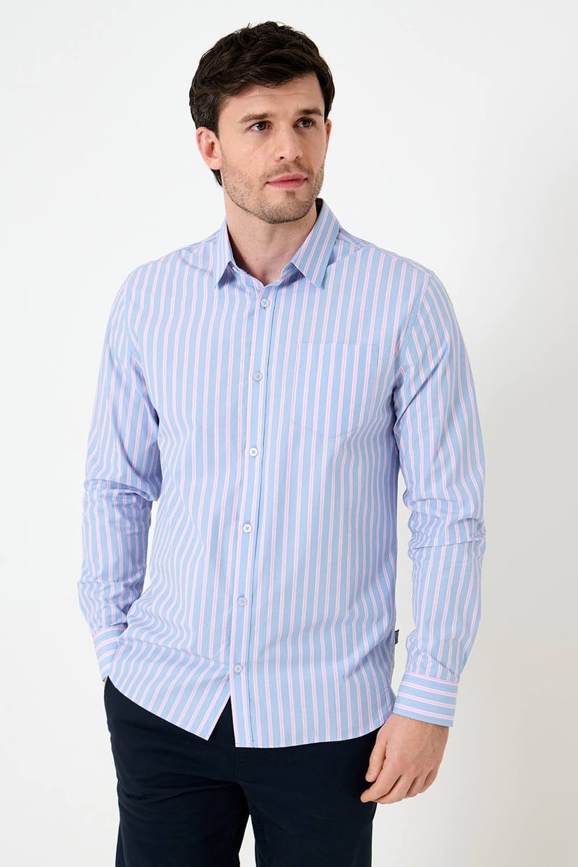 The Saltwell Blue Stripe Cotton Long Sleeve Shirt is made from cotton.