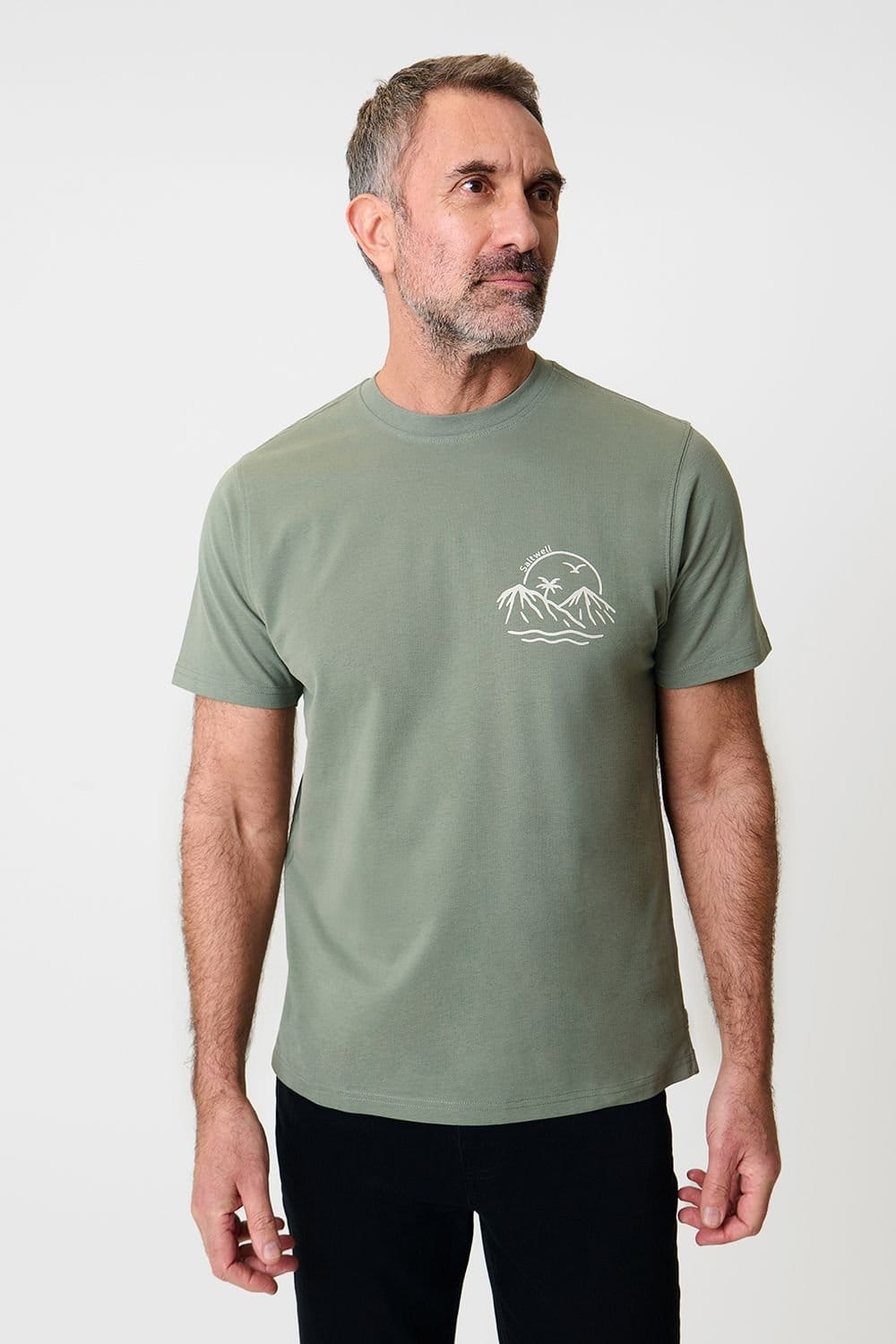 The Saltwell Men's Graphic Print Cotton T-Shirt in Green is made from cotton.