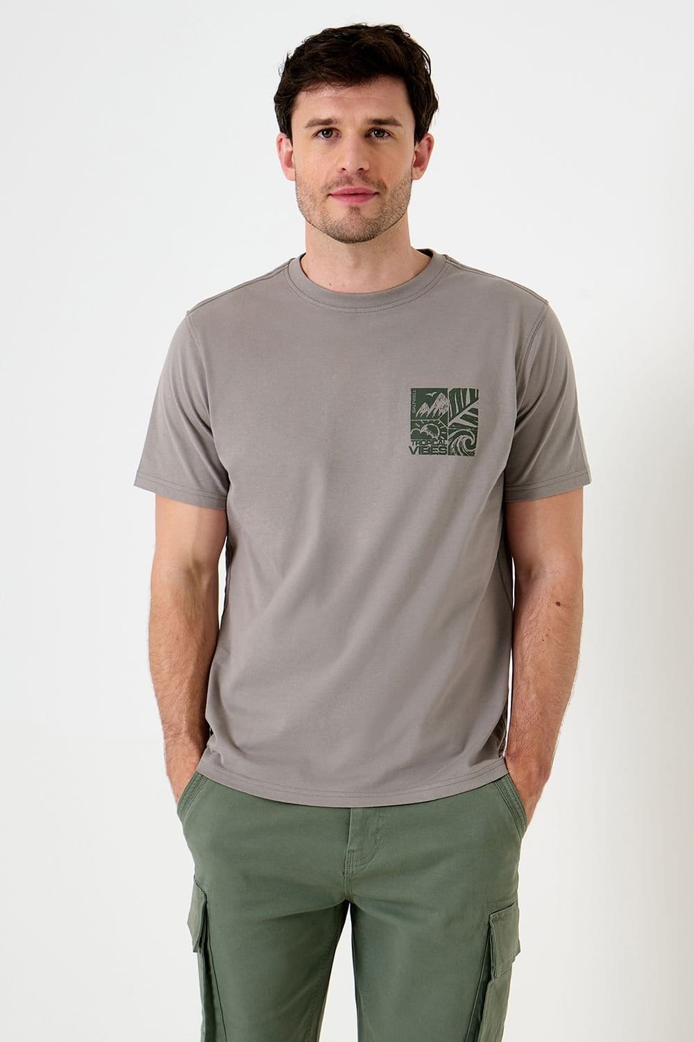 The Saltwell Men's Graphic Print Cotton T-Shirt in Grey is ideal for casual, everyday.
