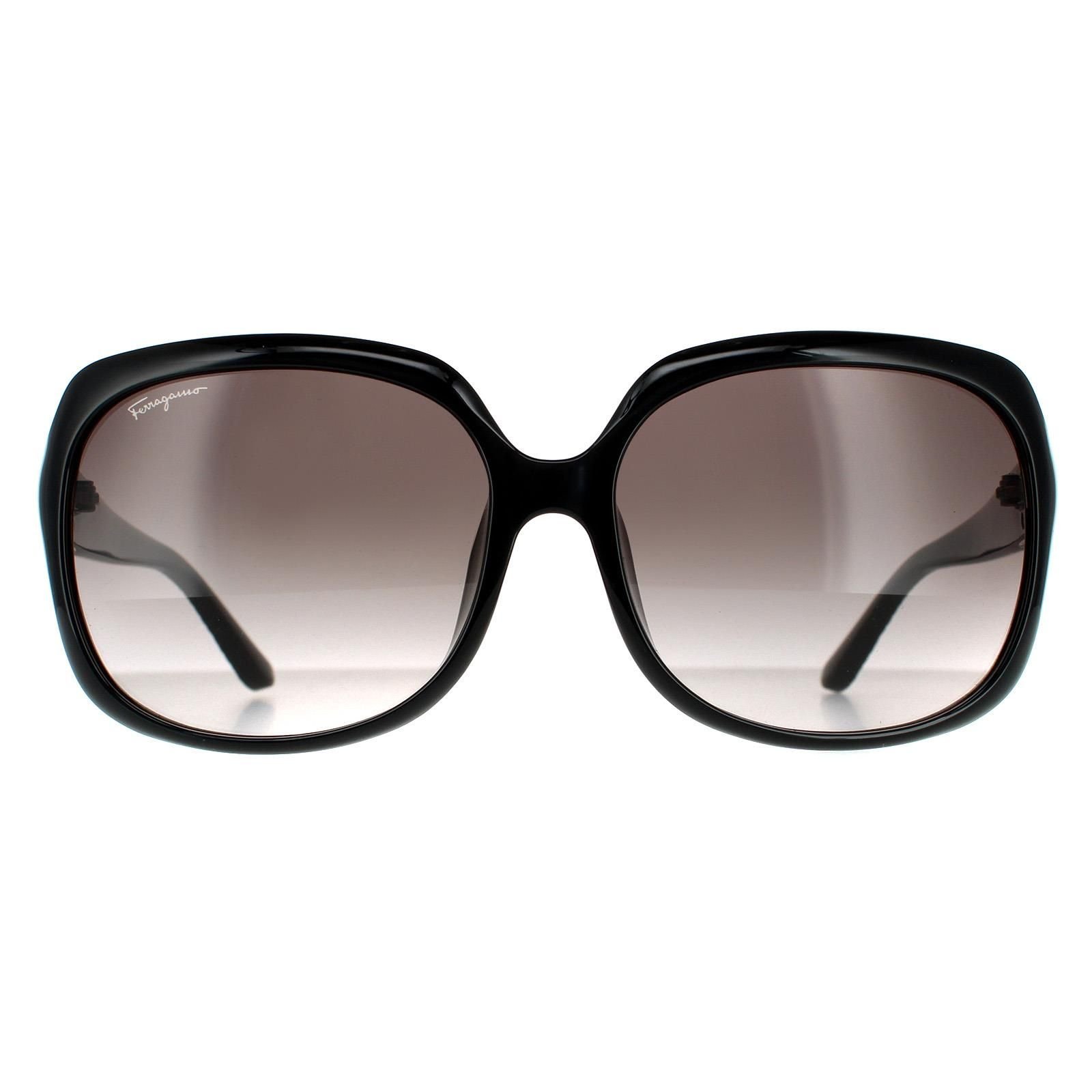 The Salvatore Ferragamo Black Grey Gradient Rectangle Sunglasses is available in sizes ONE SIZE.