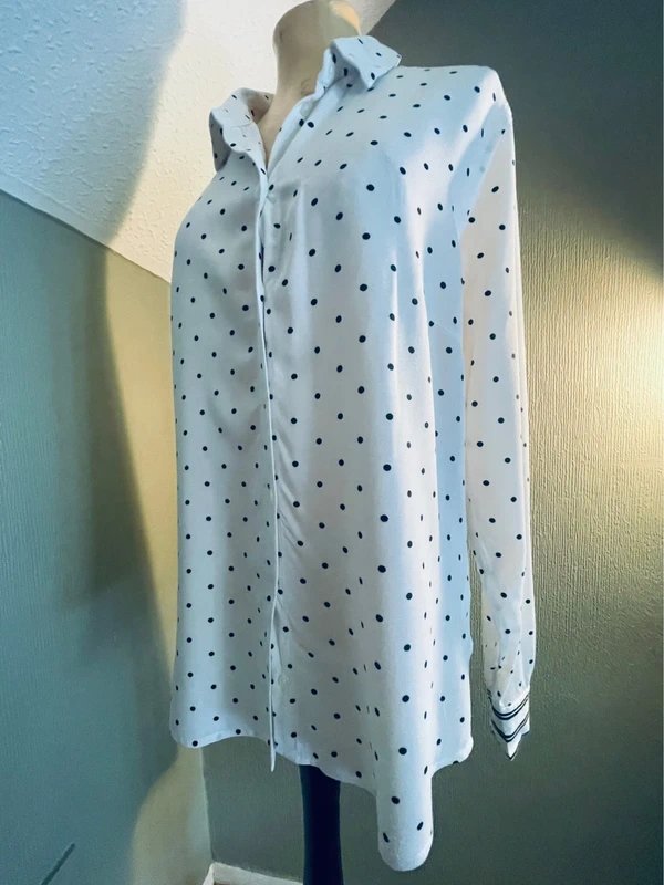 The Sandwich Black and White Polka Dot Shirt is available in sizes XL.