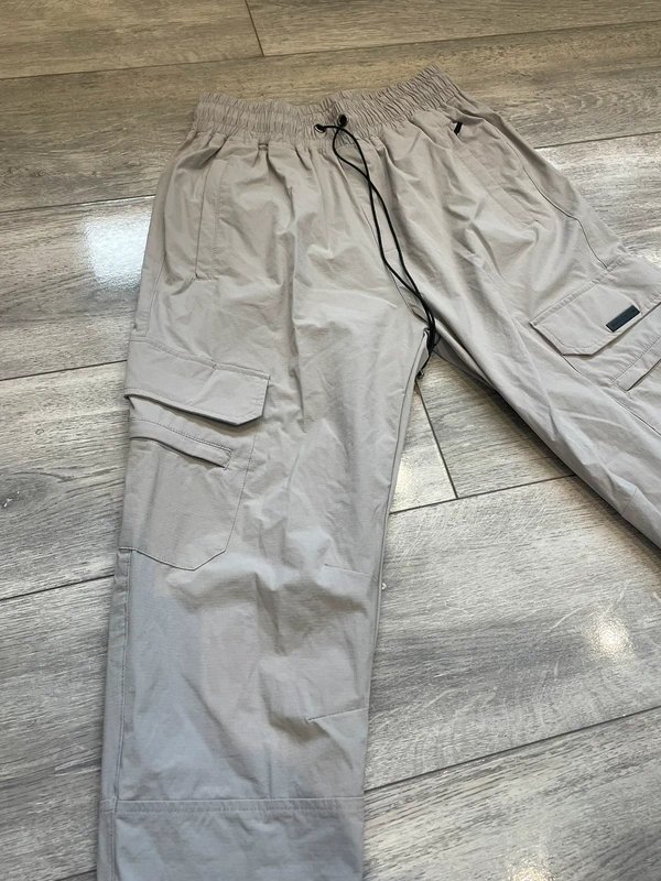 Grey Cargo Pants with multiple pockets, ideal for casual, urban, and smart-casual outfits. Designed with a relaxed fit, drawstring waistband, cargo pockets, and zipper fly closure.