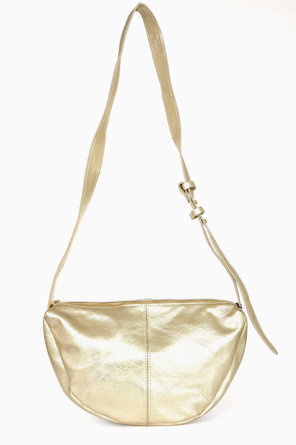 The Sarta Gold Metallic Italian Leather Crossbody Bag is available in sizes ONE SIZE.