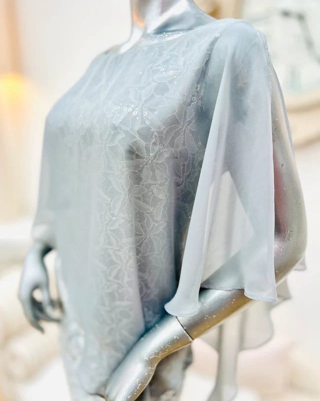 Scarlett Silver Grey Chiffon Lace Sequin Cocktail Dress