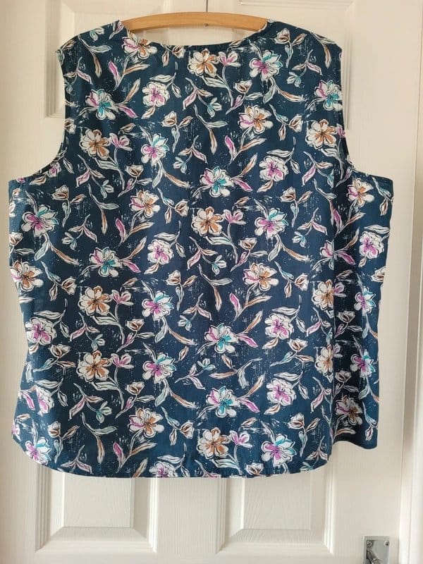 “Pair this top with high-waisted denim shorts and white sandals for a casual summer look.”