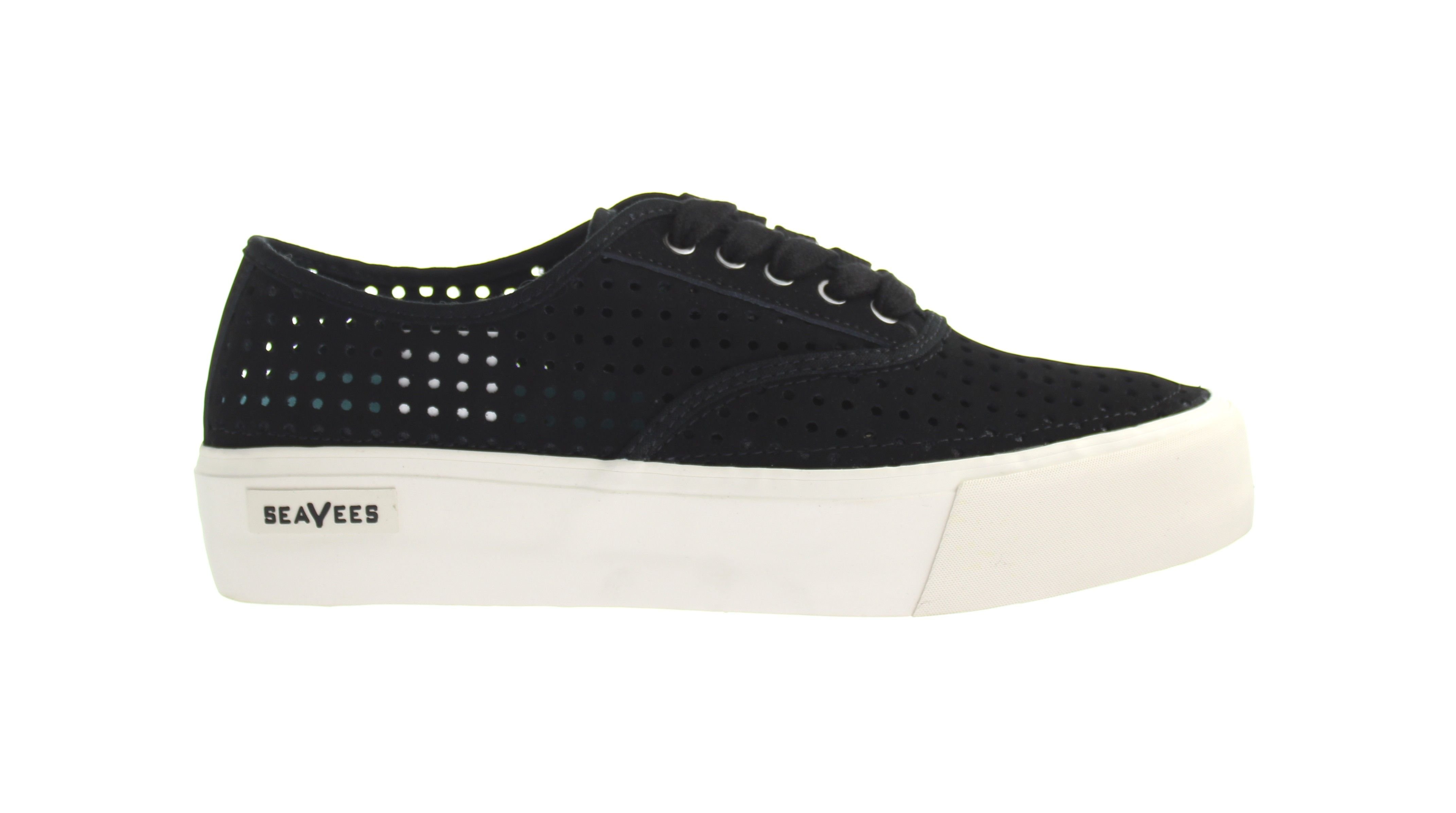 The Seavees Black Nubuck Leather Platform Lace-Up Sneakers is available in sizes 5.