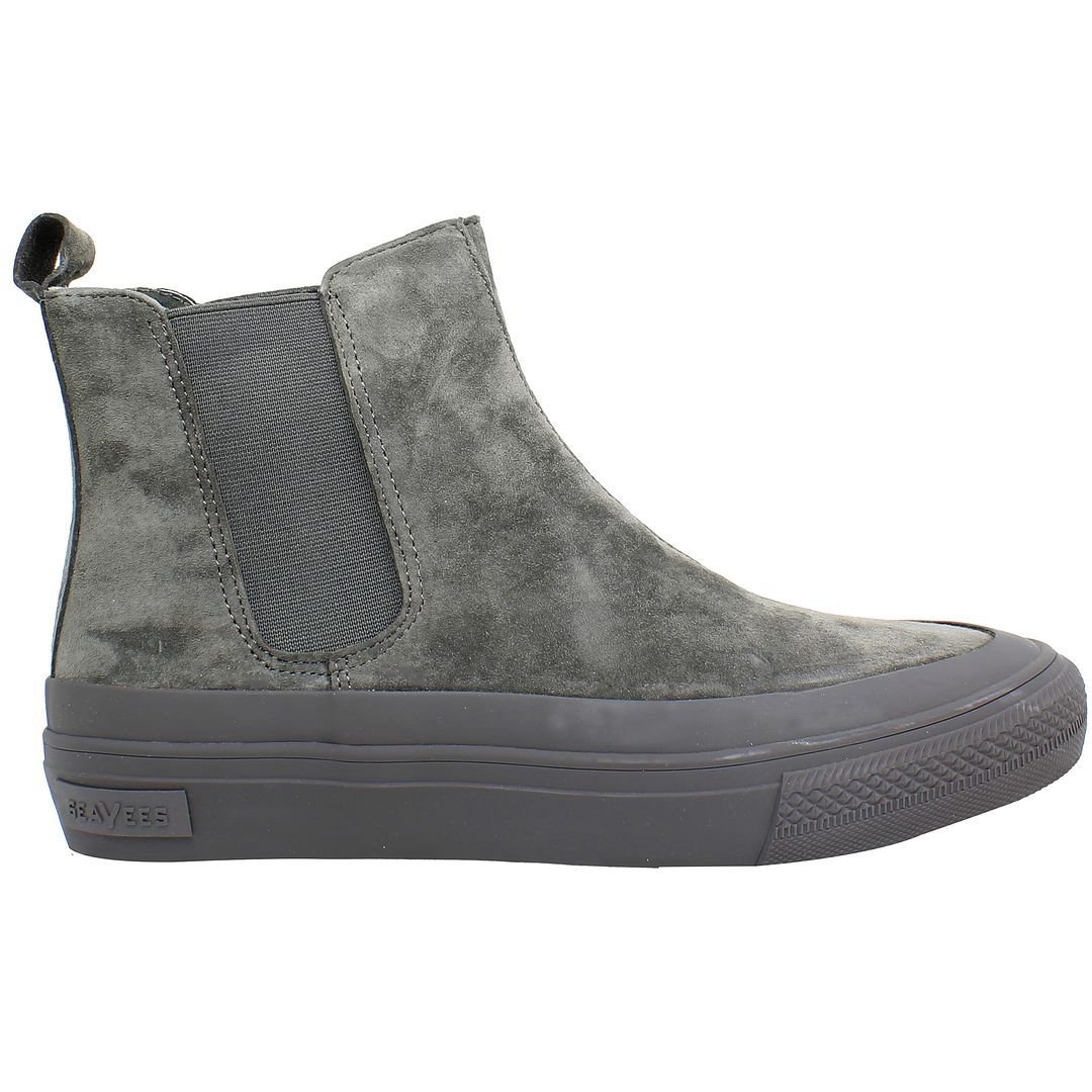 The Seavees Women's Shipyard Slip-On Grey Suede Leather Boots is available in sizes 5.