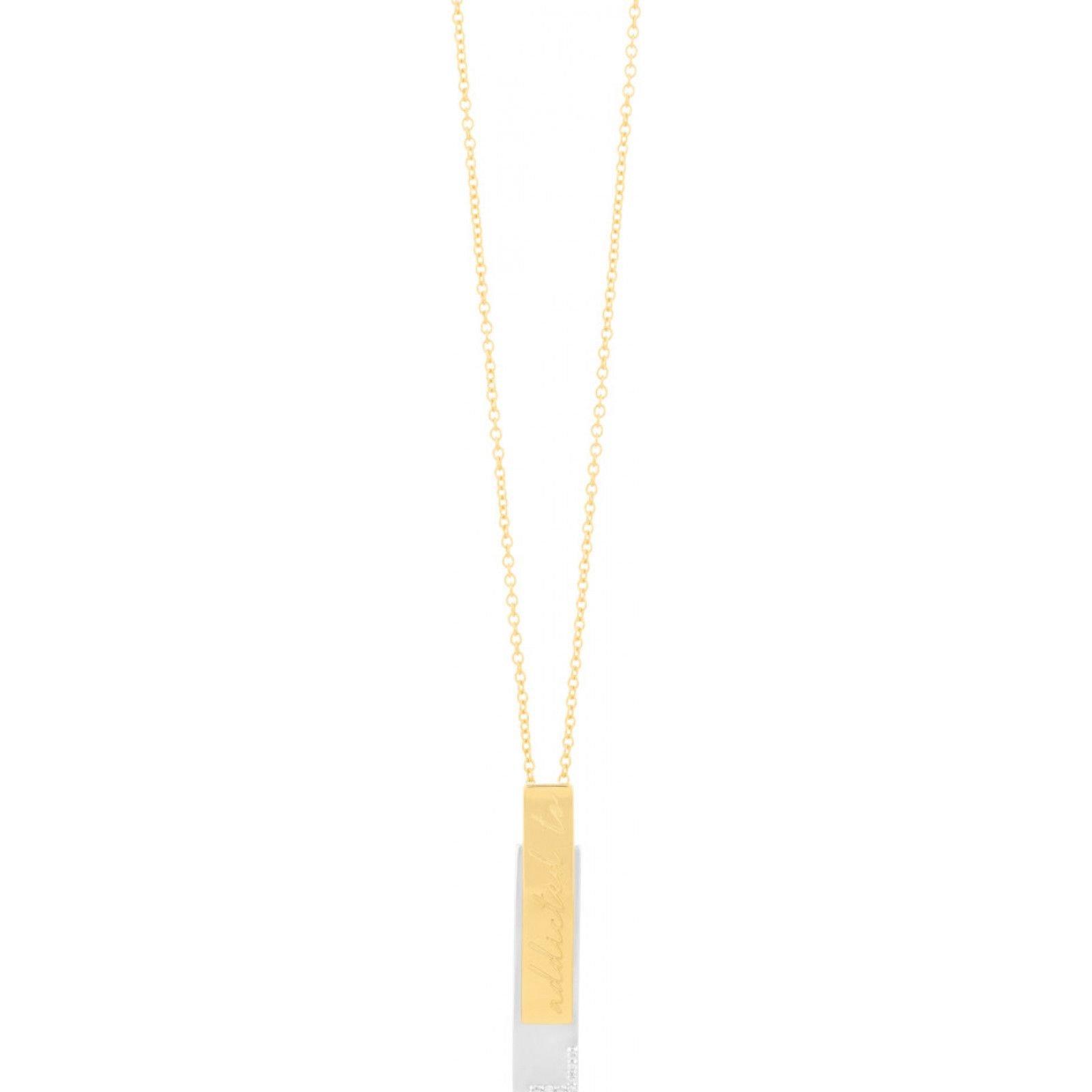 Elegant gold necklace from Secrecy, featuring a sleek bar pendant with a diamond accent. Crafted with high-quality materials, this piece is designed to complement any outfit.