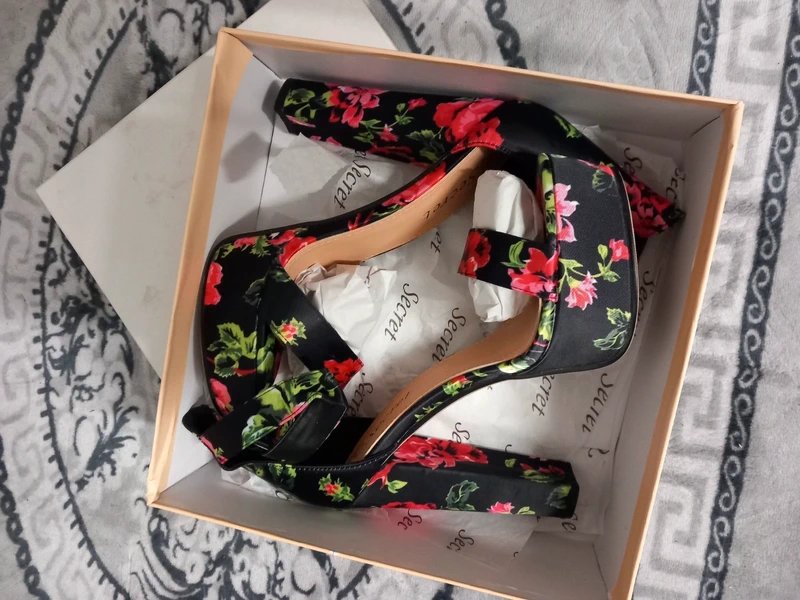 The Secrets Floral Satin Platform Heels Size 7 is ideal for evening, party, date-night.