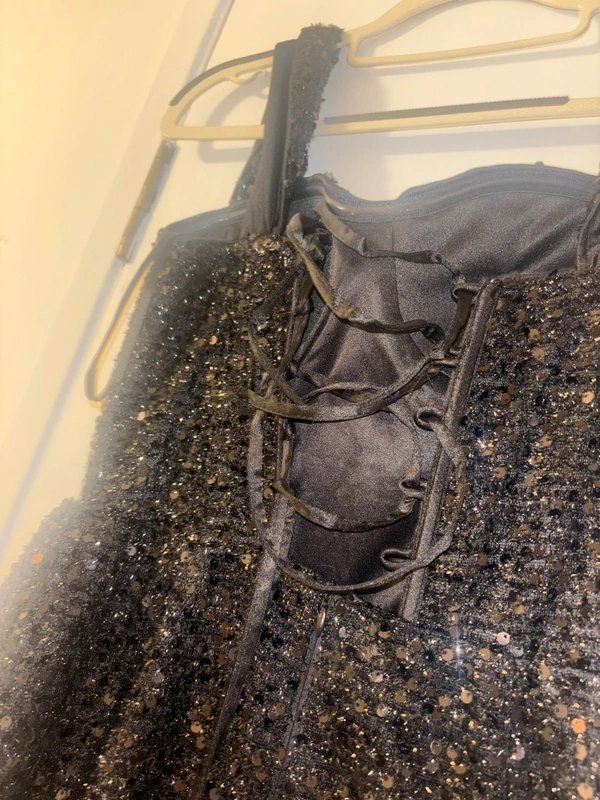 The Shein Black Sequin Evening Gown is available in sizes S.