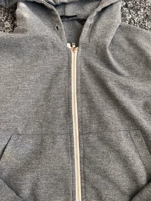 See all outfit ideasThis grey hooded zip-front crop top features a cozy zip-up front and a hood for added warmth. Made from a slightly bobbly long-sleeve fabric, it's perfect for casual wear. The low price reflects its slightly worn look.