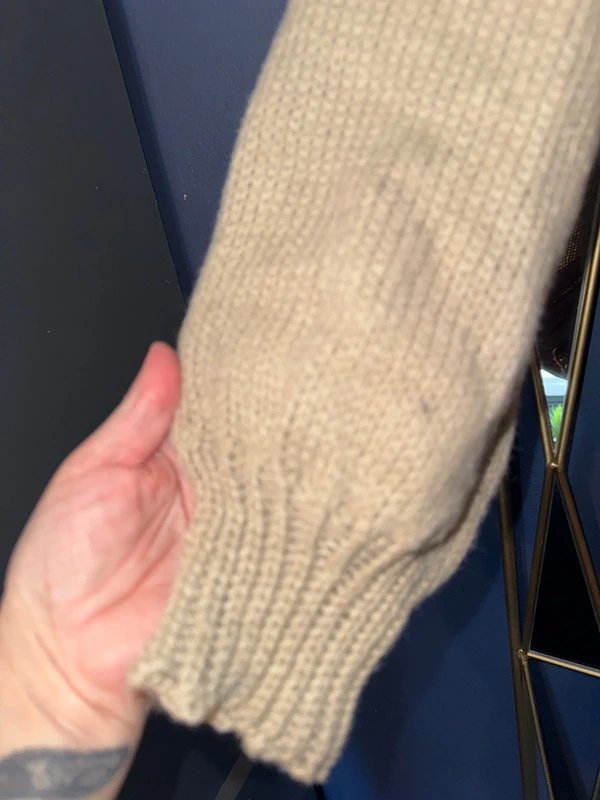 The Shein Chunky Knit Long Cardigan in Beige is made from knit.
