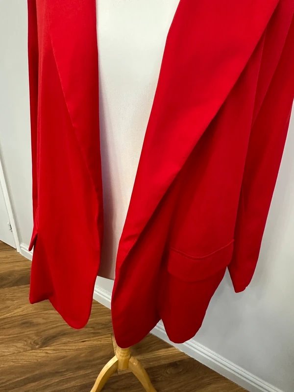 The Shein Curve Red Blazer Jacket in Red is made from lightweight fabric.