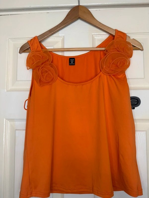 The SHEIN Curve Orange Strap Top with Floral Detail is ideal for casual, beach, party.