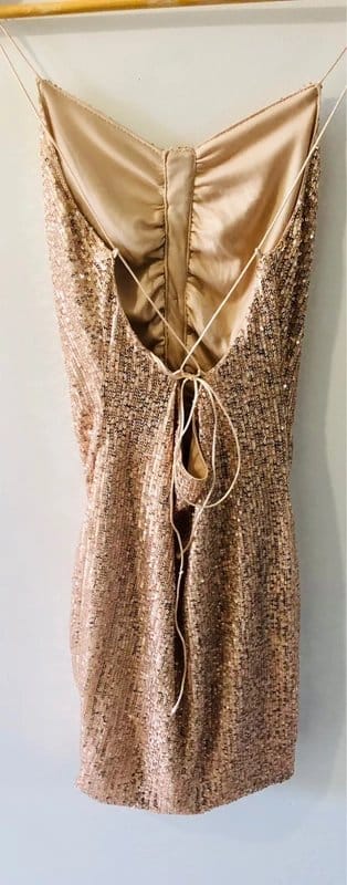 “Pair with gold high heels and a clutch bag for a glamorous evening look.”