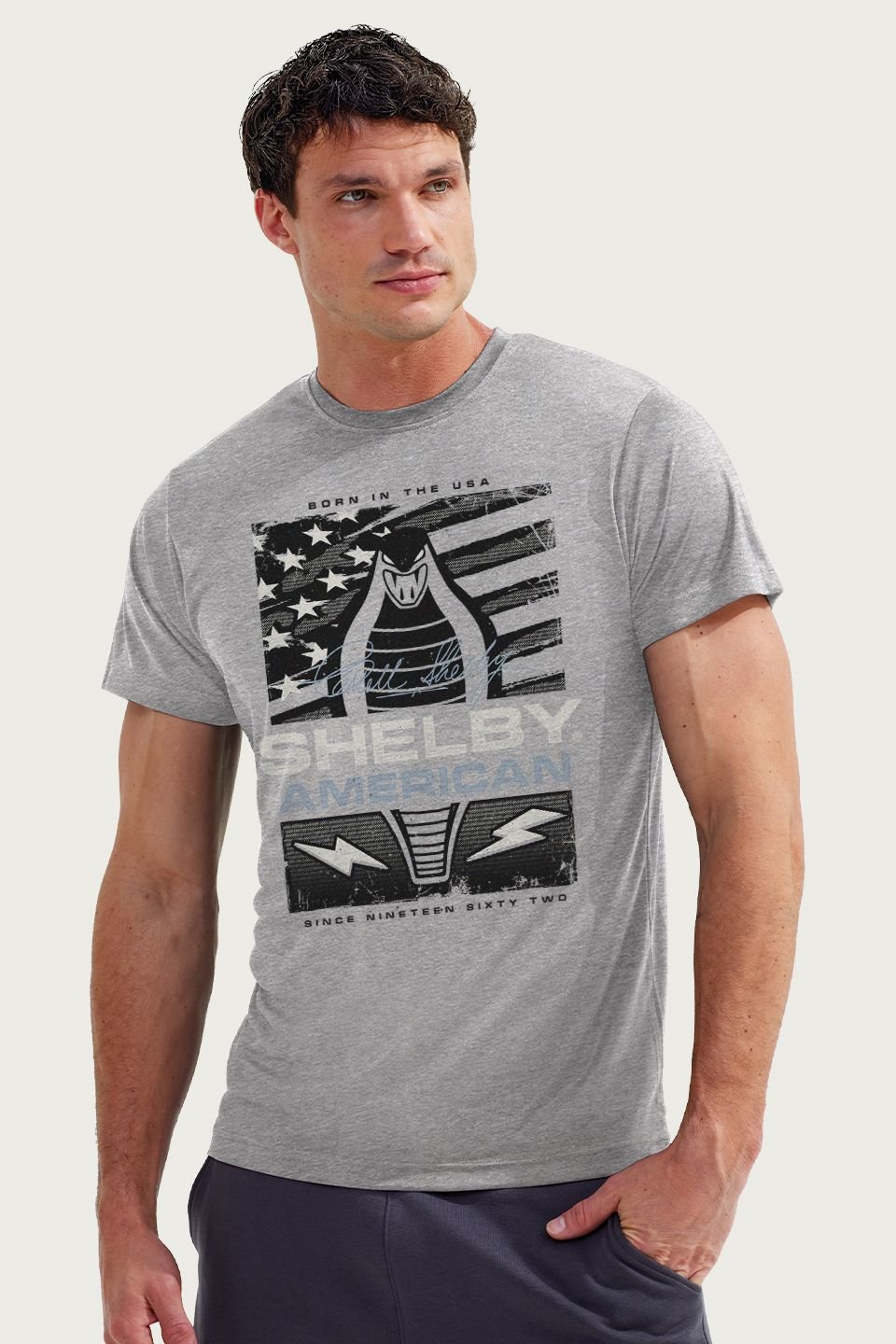 The Shelby Men's Born In The USA T-Shirt in Mid Grey is ideal for casual, everyday.