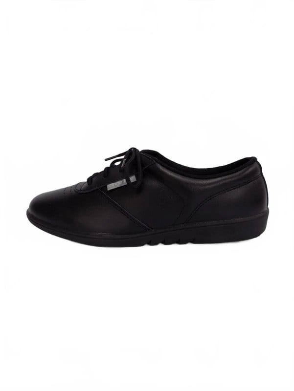 Stylish and practical black lace-up shoes by Shoe Tree. The round toe and low flat heel provide comfort and a secure fit. Made from durable material, these shoes are perfect for everyday wear.