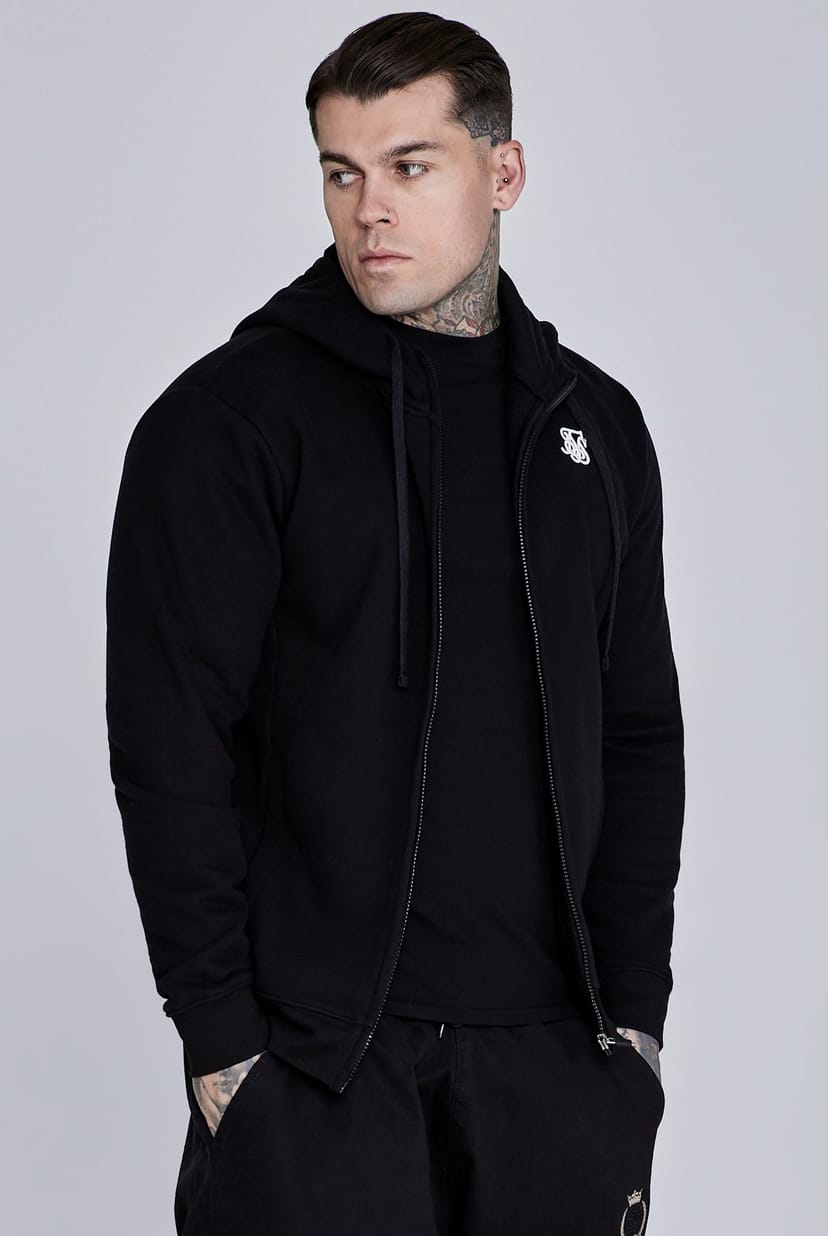 The SikSilk Men's Essentials Full Zip Hoodie in Black is ideal for casual, everyday, outdoor.