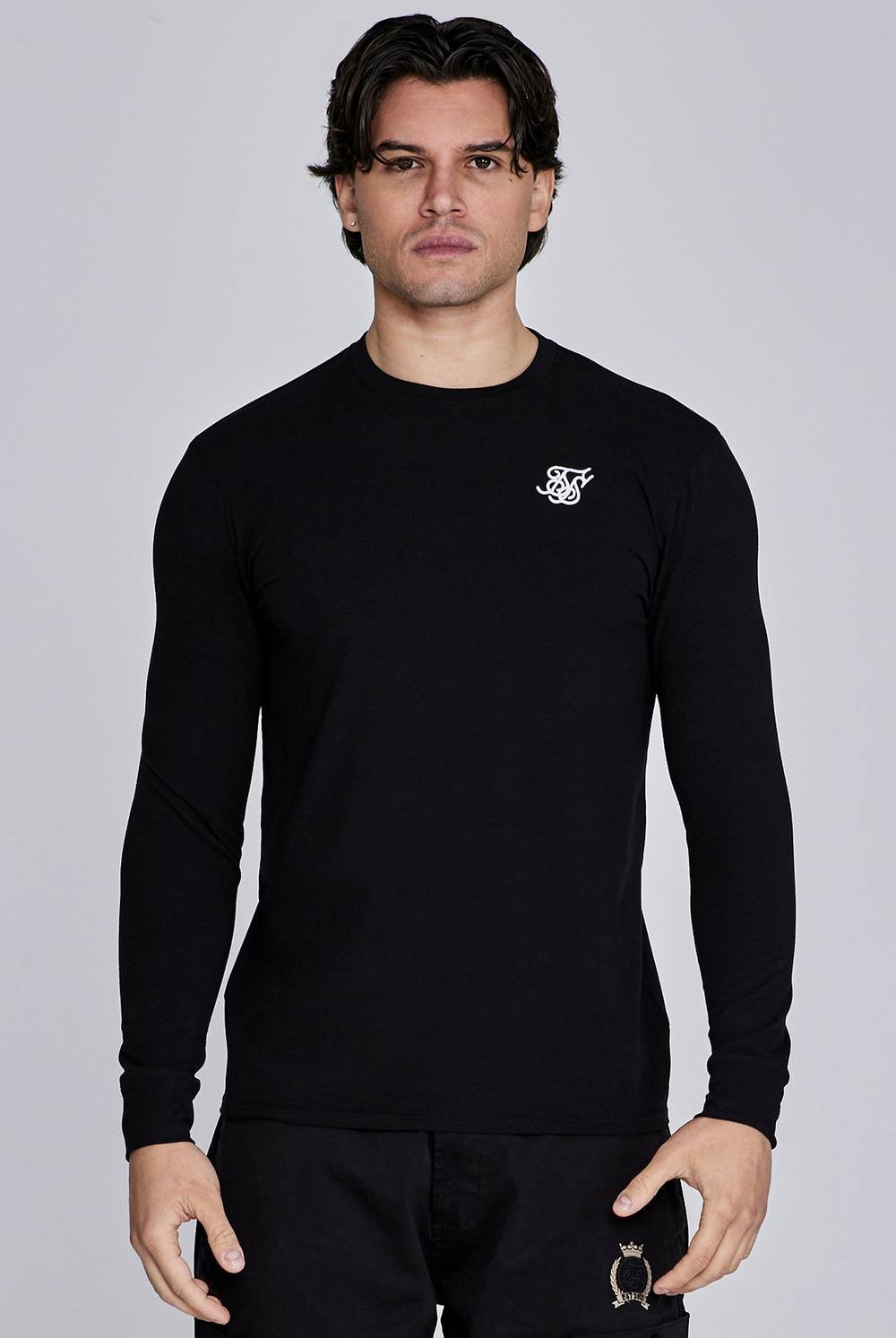 The SikSilk Men's Essentials LS T-Shirt in Black is made from cotton.