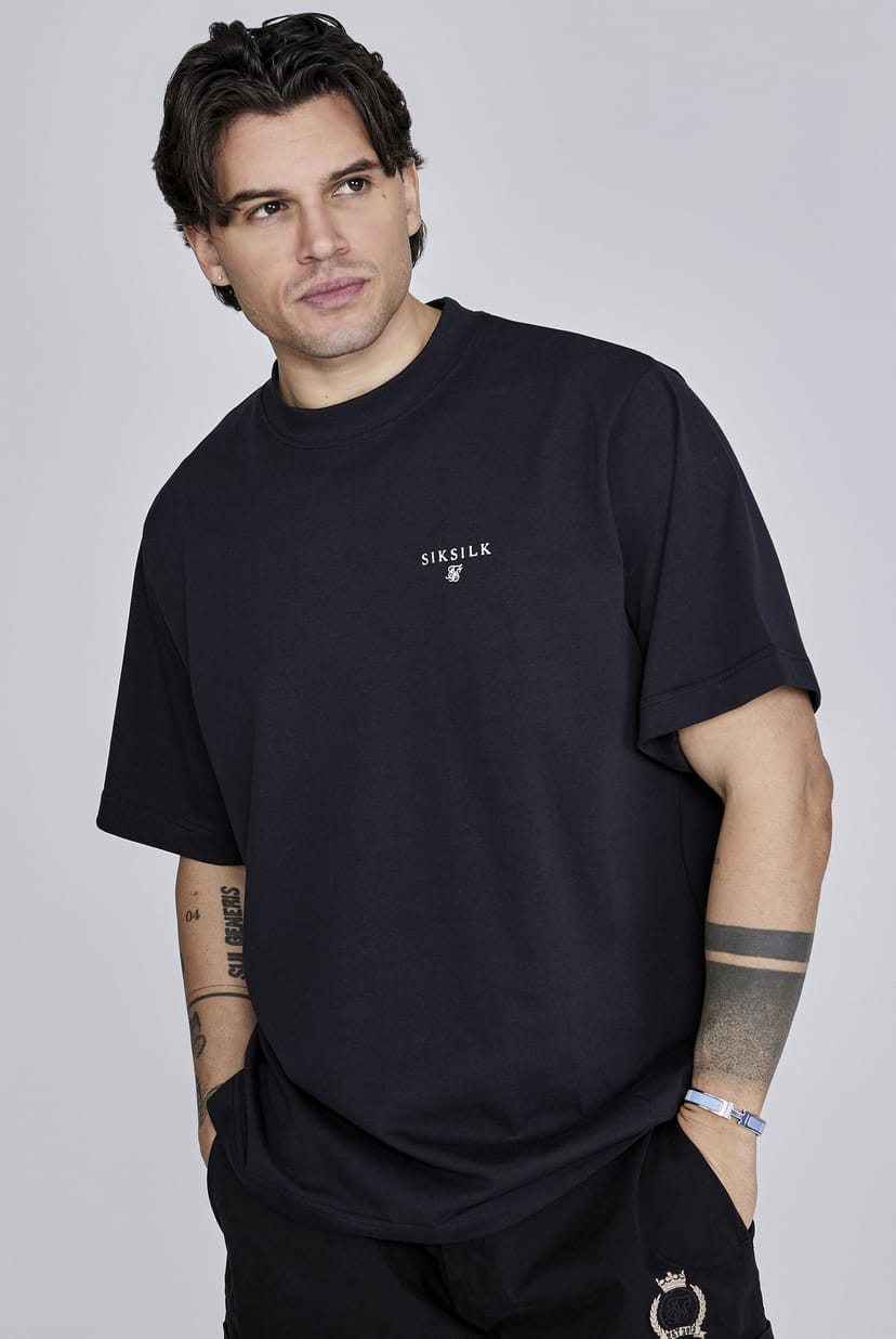 Stylish oversized black t-shirt by SikSilk. Made from soft, breathable fabric, it features a crew neckline and short sleeves. Ideal for casual wear or layering.