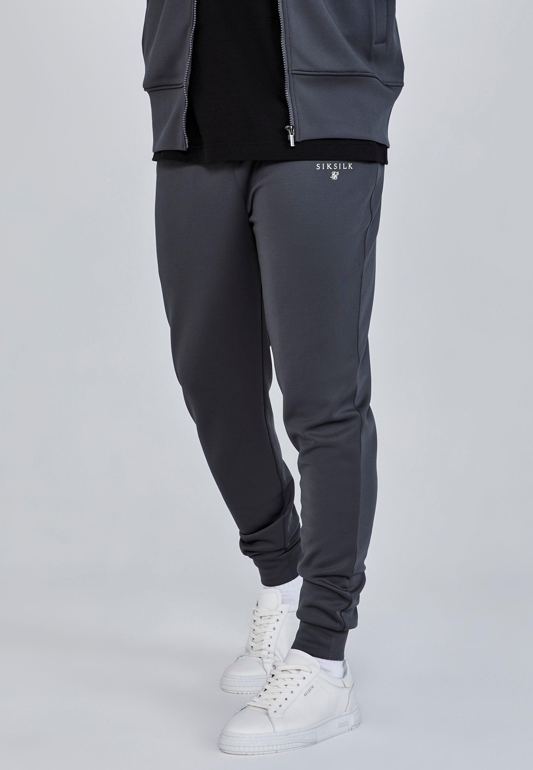 The SikSilk Men's Grey Poly Track Pants is made from polyester.