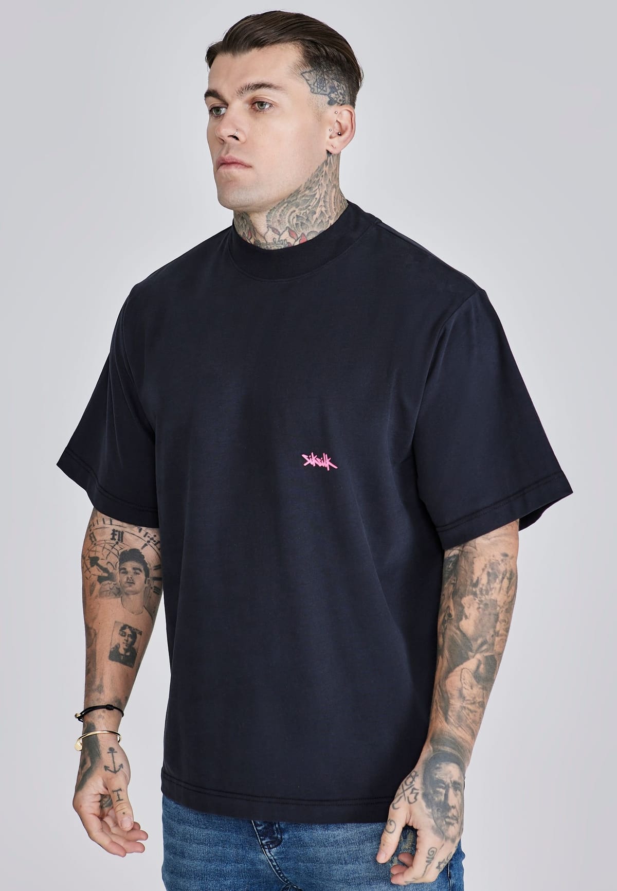 The SikSilk Men's Black Neon Pink Oversized T-Shirt is available in sizes XS.