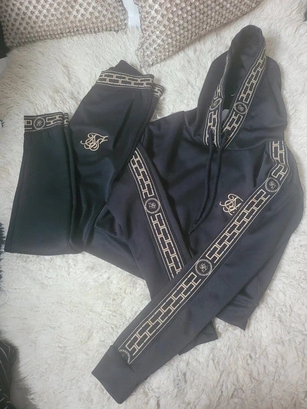 The Siksilk Black and Gold Tracksuit is available in sizes S.